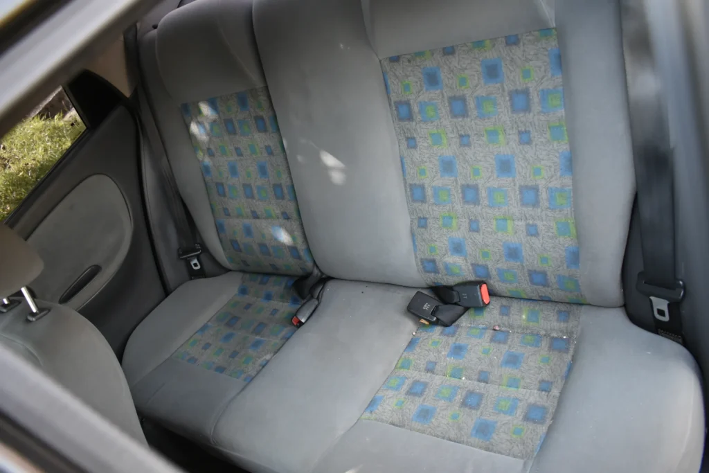 Hátsó ülések kiporszívózása az övek és övcsatok vegyszeres tisztítása. Az első képen látszik, hogy a tulaj kisgyermeke nem veti meg a kocsiban való nassolást ezzel nem kímélve a hátsó üléseket, de rajtunk ez sem fogott ki, egy alapos porszívózás es vegyszeres tisztítás után már nem ragad bele a kocsiba a gyerek a sok lepotyogott nasitól és cukortól.